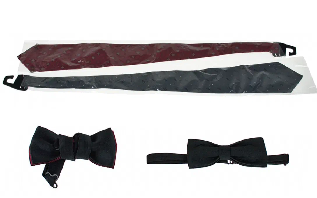Kravaty - dle módních trendů, jednobarevné, s tiskem. Soupravy kravata, šáteček. Motýlky - v krabičkách, již navázané, jednobarevné a nebo s tiskem.