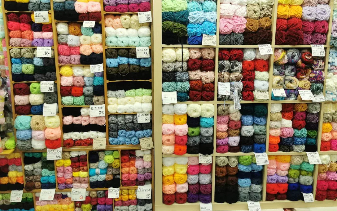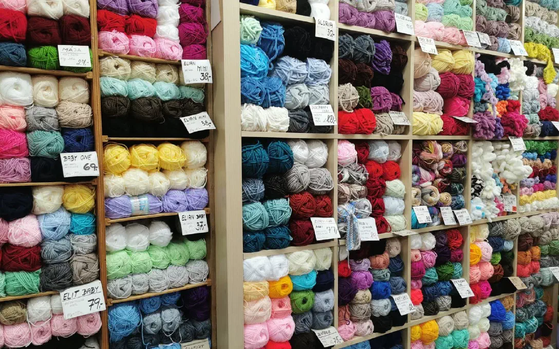 Široký sortiment na strojní i ruční pletení. Vlákna v různých průměrech, složení - acryl, polyamid, polyester, ovčí vlna, kombinace materiálového složení.