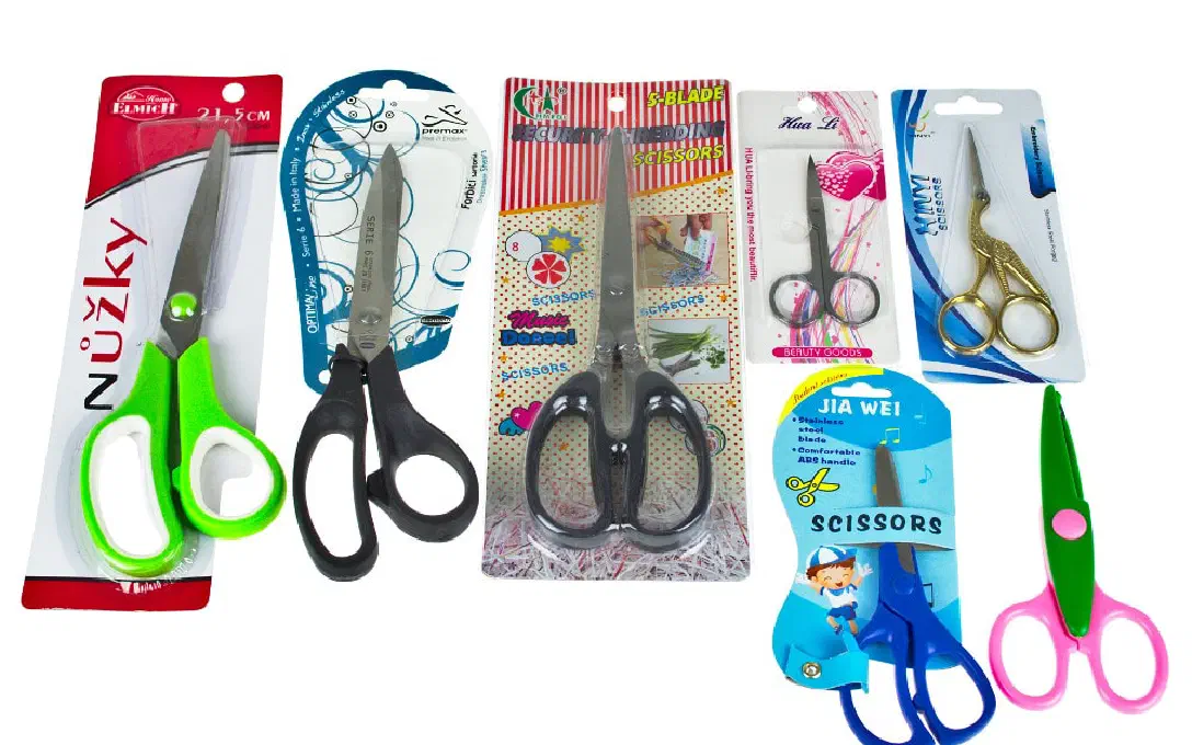 V naší prodejně naleznete nůžky pro nejrůznější použití. Krejčovské nůžky jsou speciálně určeny na stříhání látek - jsou pevné a kvalitně stříhají. Dětské nůžky v klasickém provedení mají kulatou špičku, aby se dítě při stříhání neporanilo. V naší nabídce jsou také nůžky s dekorativním střihem (vlnky, cik-cak, obloužky, zoubky), které jsou vhodné pro dekorování papíru.